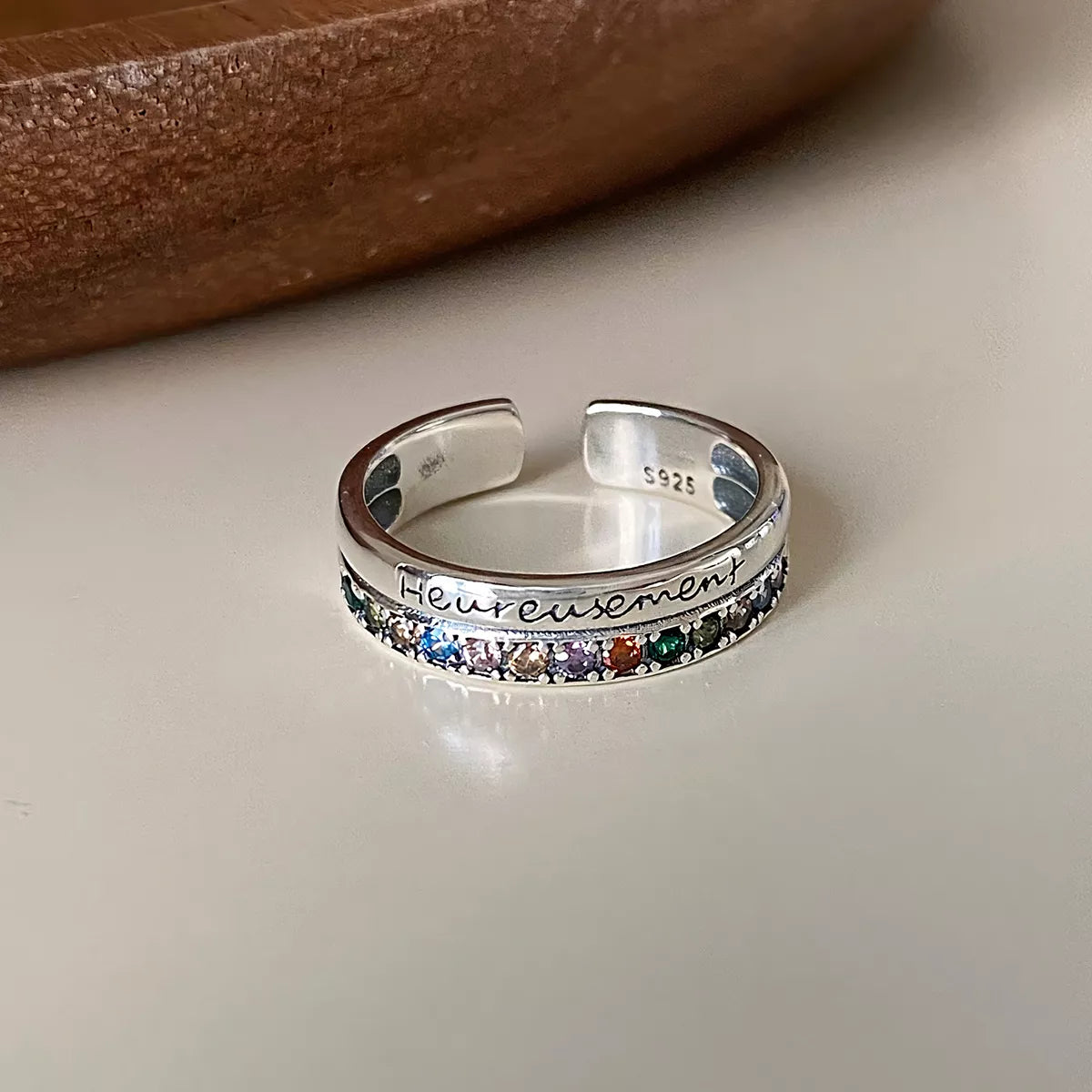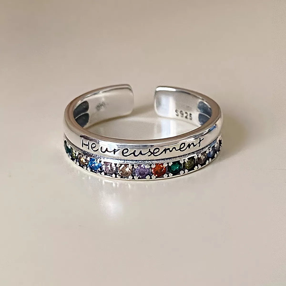 925 Sterling Silver Rhinestone Open Ring