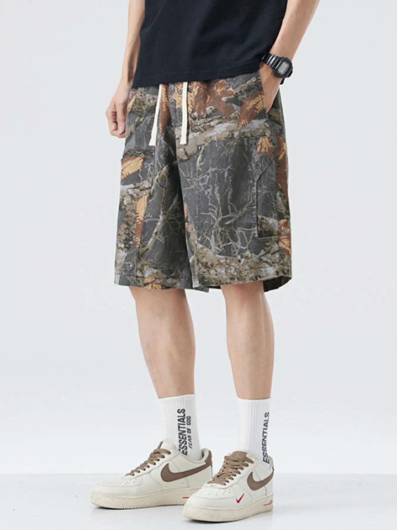 Men's Plus Size Drawstring Printed Shorts