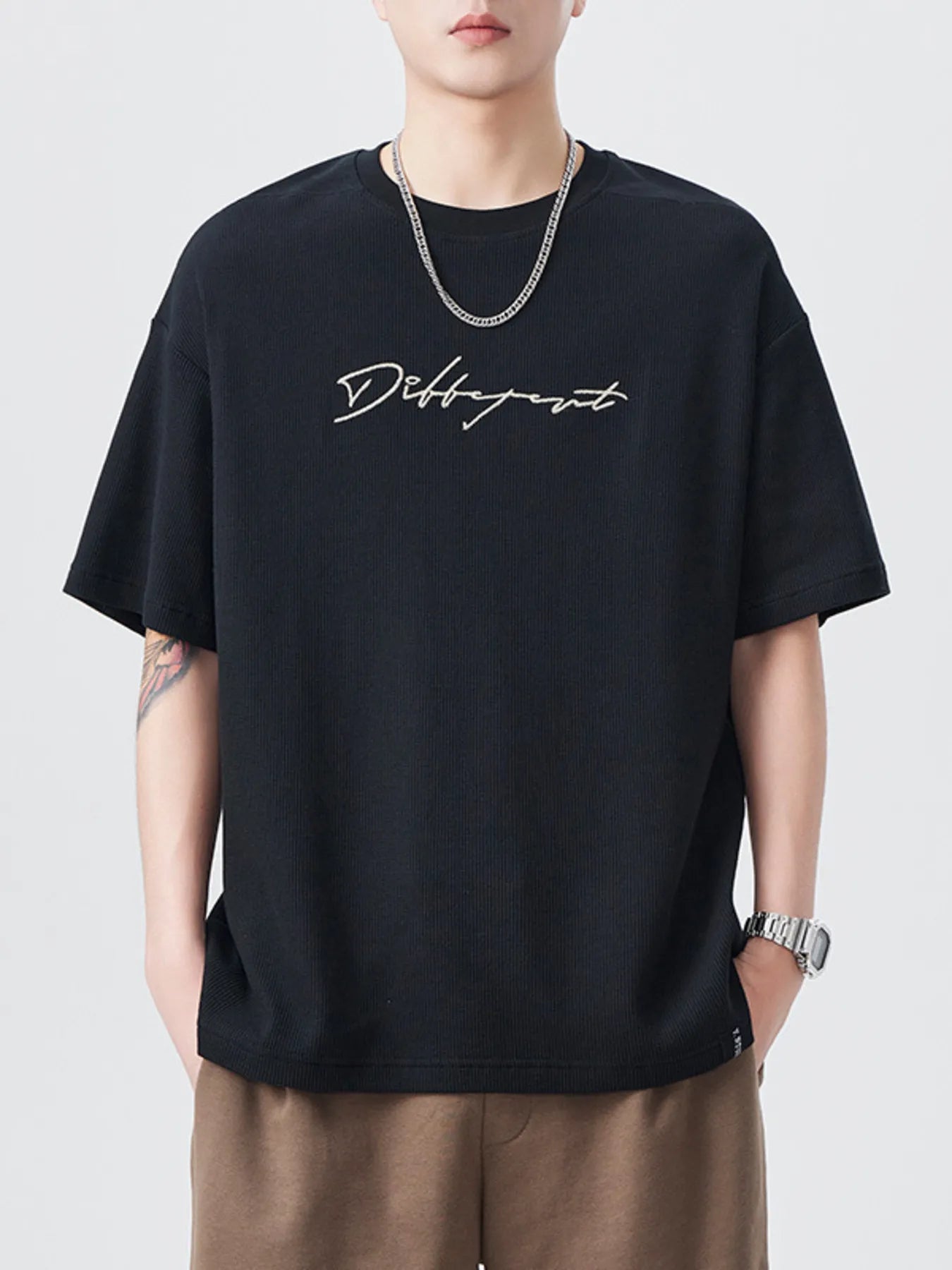 Men's Plus Size Oversized Round Neck Letter Graphic T-Shirt