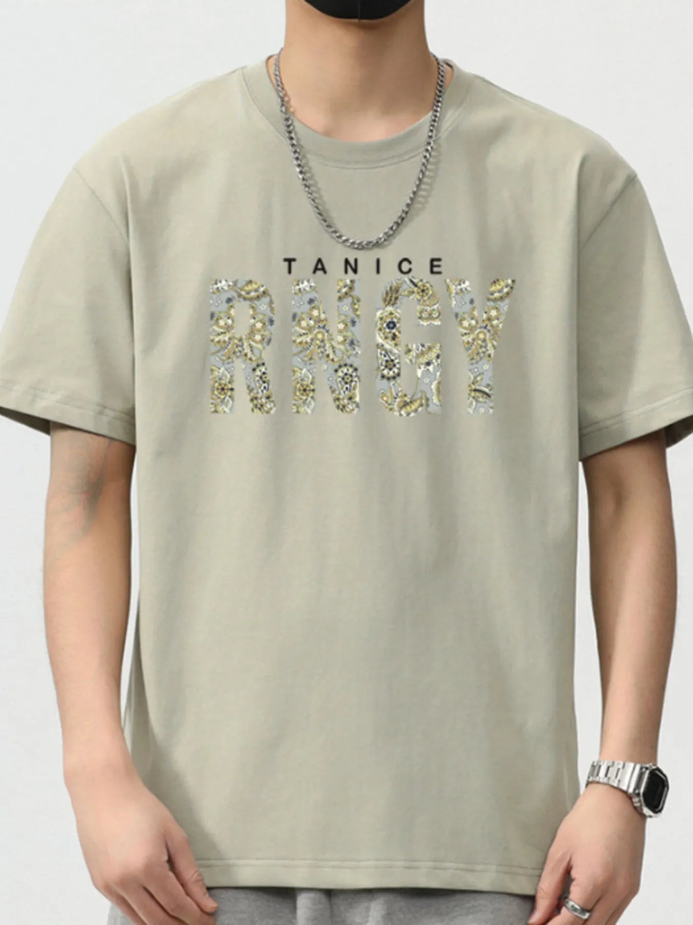 Men's Plus Size Round Neck Letter Graphic T-Shirt